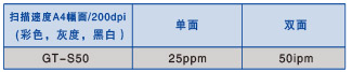 GT-S50 可达到 25ppm/50ipm 的超高扫描速度,大大提高办公效率 。